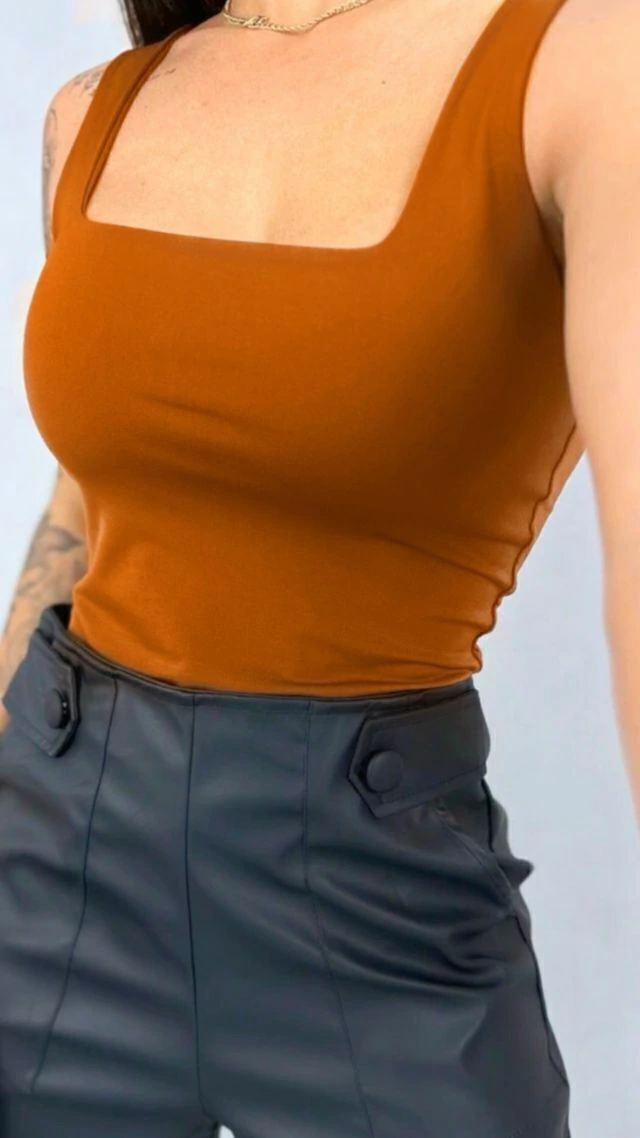 Dica de Estilo: Para um look marcante, combine com uma saia midi e saltos altos. O Body Regata Decote Quadrado Branco é a escolha ideal para brilhar em qualquer ocasião!